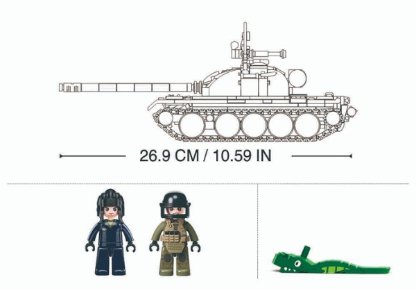 Cu ajutorul celor 604 piese, poate fi asamblat un model detaliat al celebrului tanc T-54S, oferind ore de joacă educativă și distractivă.
