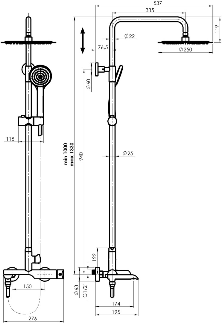Inălțime1330 mm