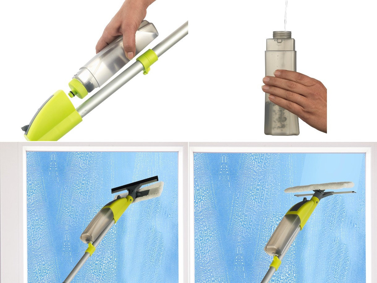 Specificații suplimentareMop 2 în 1 (mop cu două fețe și spray), 2 accesorii din pânză (față-verso pentru podea și față-verso pentru ferestre), volum rezervor: 350 ml