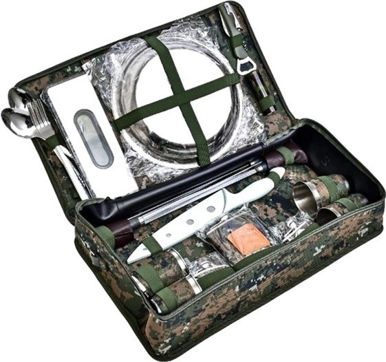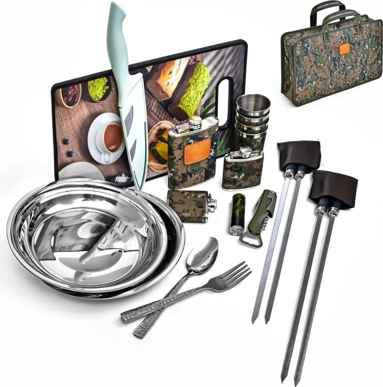 Set practic și compact, ideal pentru ieșiri în aer liber. Realizat din oțel inoxidabil și poliester.