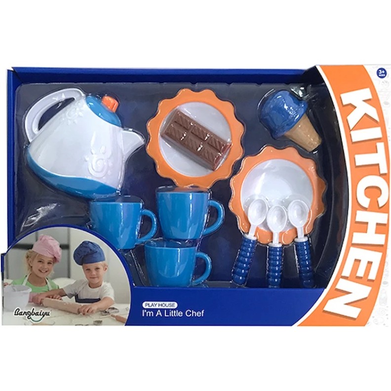 Set de vesela pentru copii cu multe accesorii fabricat din materiale de înaltă calitate, folosind vopsele netoxice.
