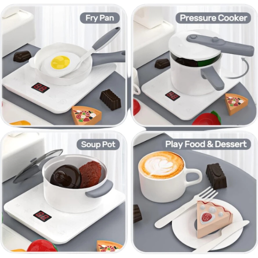 - Plită cu inducție: echipată cu foc reglabil, lumini și sunete pentru o experiență de joc mai realistă.