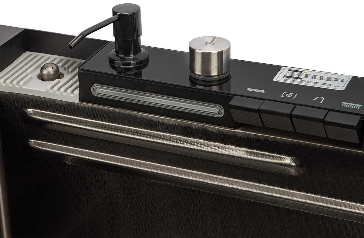 Inclus în setdozator de detergent, strecurătoare, robinet de apă filtrată (potabilă), tavă de clătire, tocător, mixer termostatic