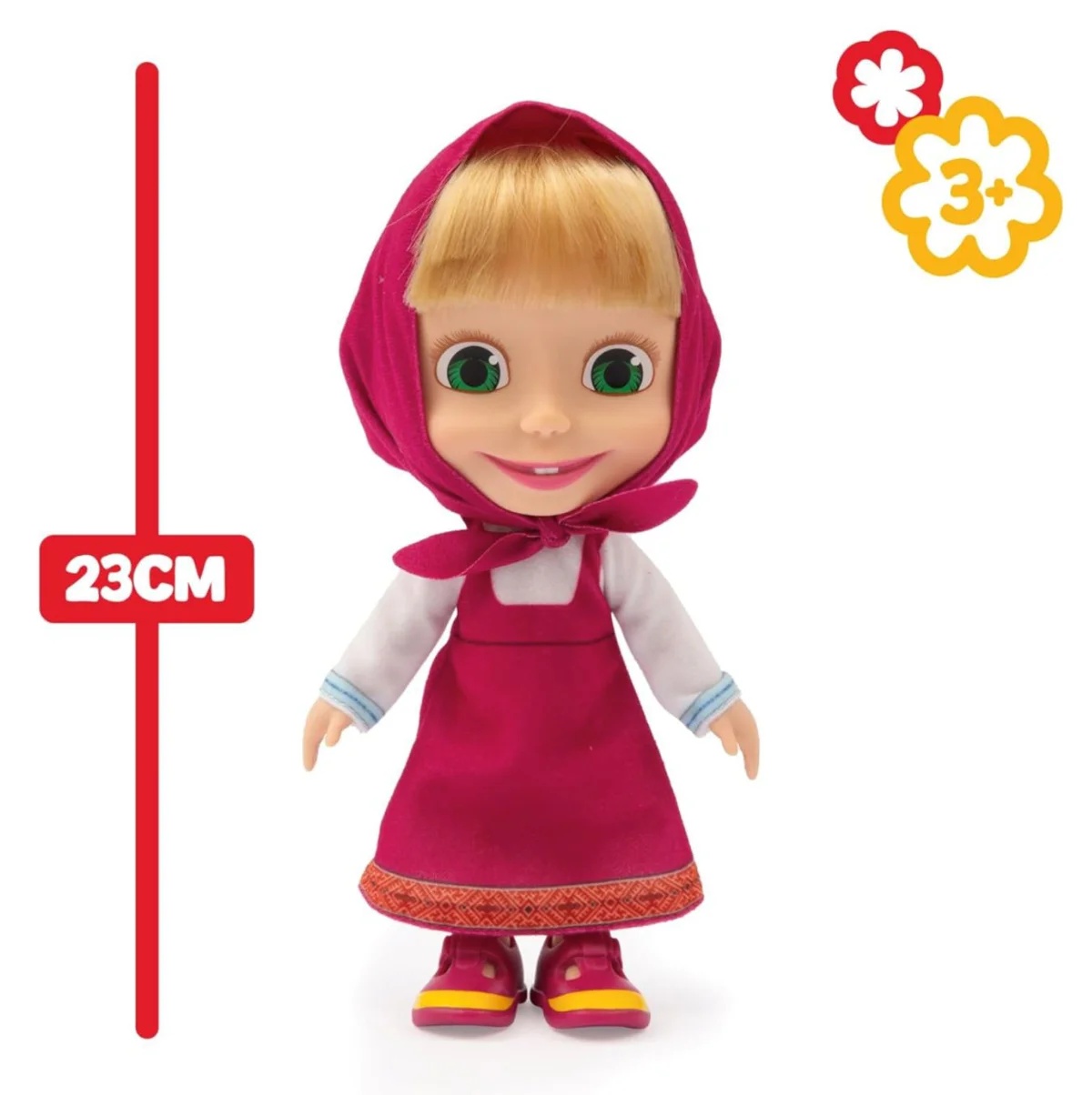 Papusa Masha de 23 cm este o reprezentare realista si detaliata a personajului indragit din serialul animat Masha si Ursul. Cu haine detasabile (rochita roz si basmaua), copiii pot schimba tinutele si recrea aventuri amuzante sau povesti proprii. Designul atent lucrat si materialele de calitate fac ca papusa sa fie confortabila pentru manutele mici si ideala pentru joaca activa. Este un cadou perfect pentru fanii seriei, incurajand imaginatia si creativitatea.