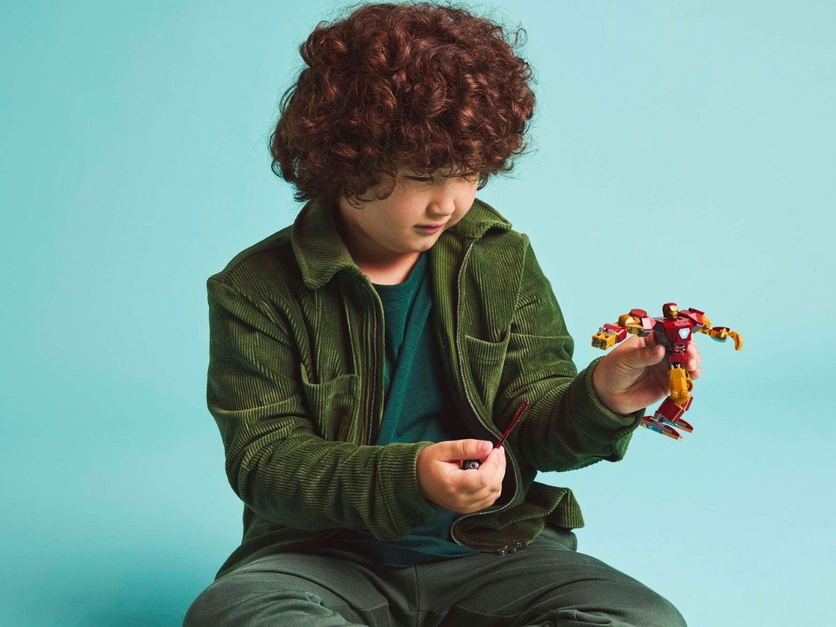 Acest set de joacă LEGO Marvel Mech include două minifigurine: Iron Man, cu o cască pliabilă și un cap rotativ pentru expresii faciale alternative, și Ultron, care ține un element cu fascicul laser. Robotul are brațe, picioare și degete articulate și un buton direcțional la capătul mâinii drepte. Trunchiul se deschide pentru a dezvălui o cabină de pilotaj unde poate sta minifigurina Iron Man. Pentru o distracție digitală suplimentară, constructorii pot mări imaginea, roti modelele în 3D și își pot urmări progresul folosind aplicația distractivă și intuitivă LEGO Builder.