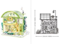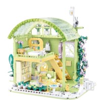 Setul conține toate piesele necesare pentru asamblarea unei căsuțe drăguțe. Culoarea verdeaței proaspete și numeroasele plante din jur creează o atmosferă de primăvară. Din exterior, casa este minimalistă, dar din spate există acces la interior. Căsuța are 2 camere și o mică curte-grădină. Multe piese oferă un aspect confortabil interiorului. Proprietarul casei este, de asemenea, prezent în set.