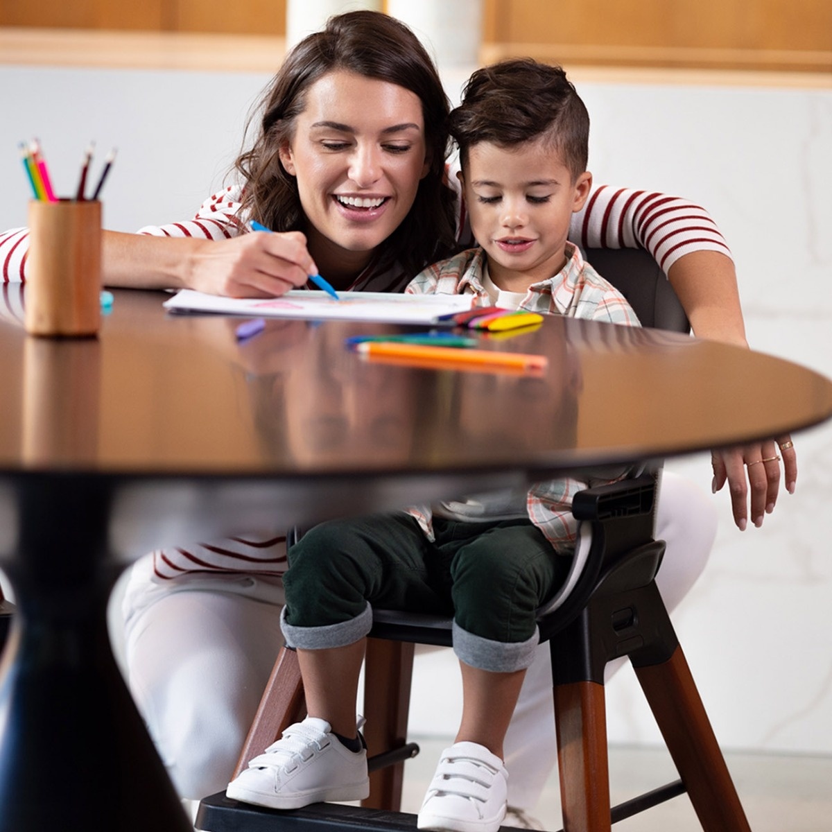 Datorita designului sau modular, Mona 4 in 1 nu functioneaza doar ca un scaun de masa. Produsul poate fi transformat intr-o versiune redusa a unei piese de mobilier, precum si un scaun turistic si un scaun de bar cu o capacitate de incarcare de pana la 75 de kilograme. Modificarile rapide si usoare ale functionalitatii produsului sunt asistate de picioarele detasabile cu „clic”, care va permit sa reglati inaltimea scaunului la nevoile actuale ale copilului.