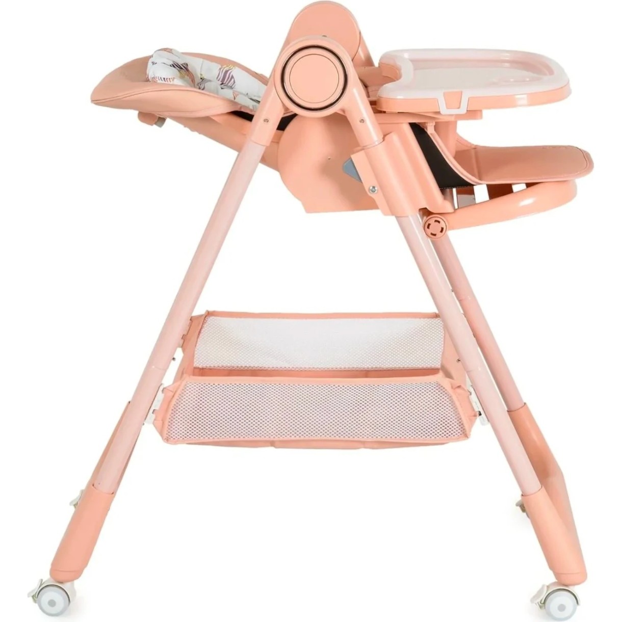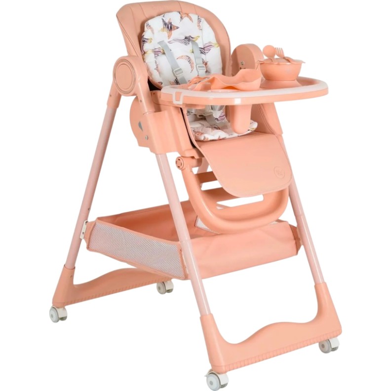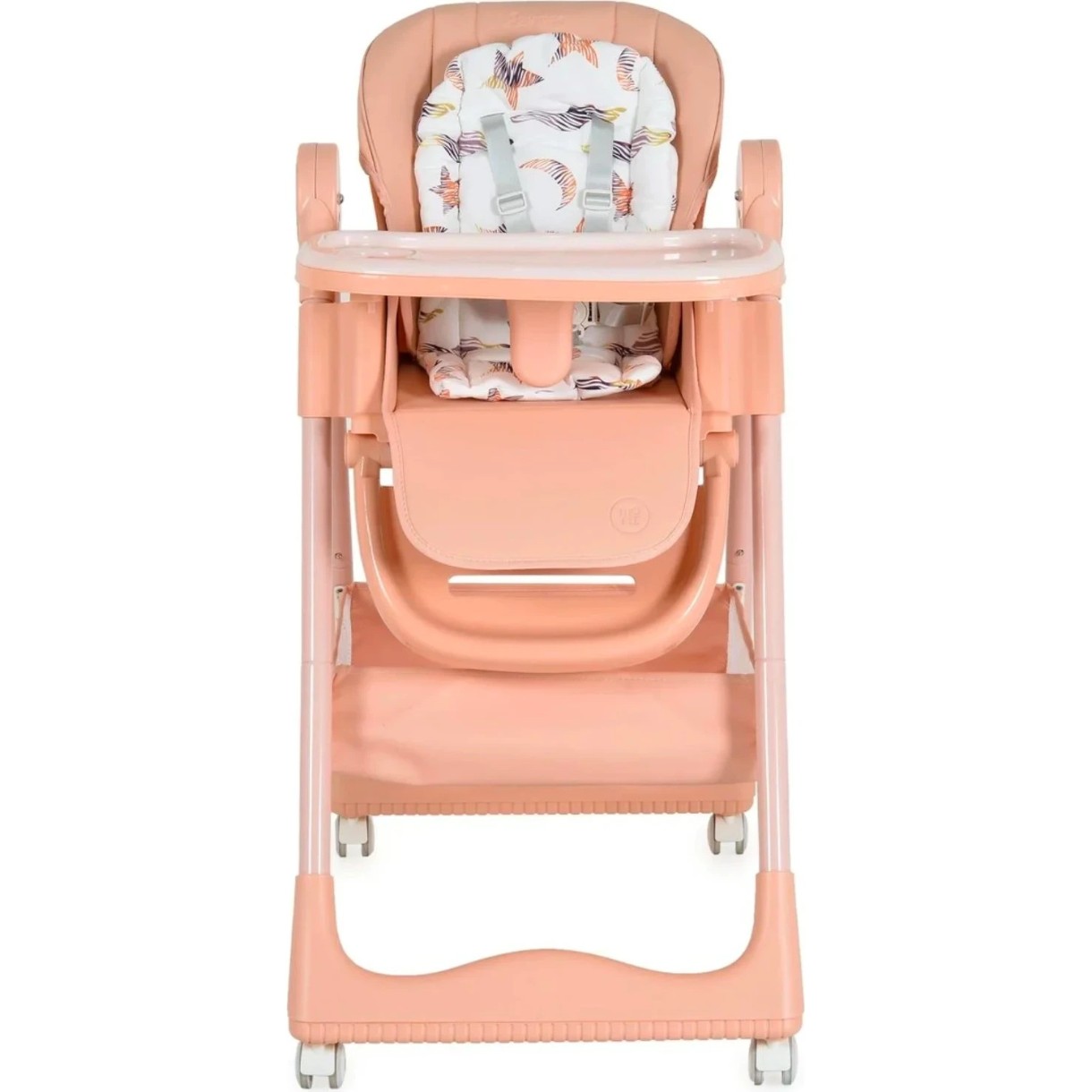 Design pliabil și confort suplimentar: scaun compact, ușor de depozitat, cu pernuță moale pentru confort maxim și accesorii incluse pentru primele mese independente.