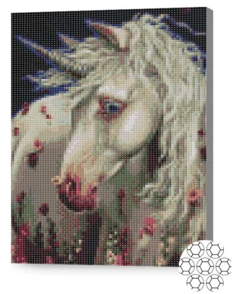 Pictura cu diamante după numere Art Gallery Premium Unicorn printre flori 30x40cm (XQB80211)