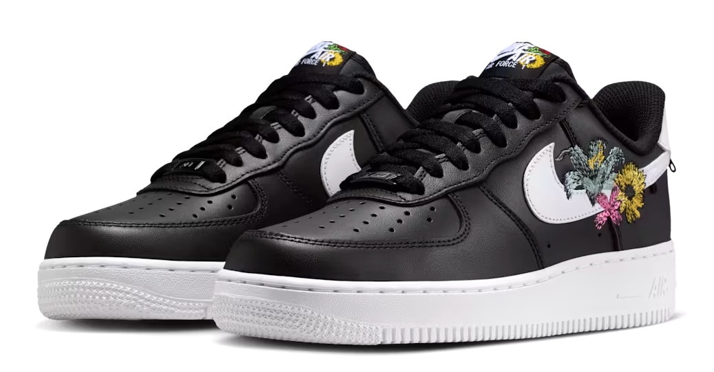 Ghete pentru dame Nike Air Force 1 07 Premium Flowers Black/Metallic Gold/White, s.36