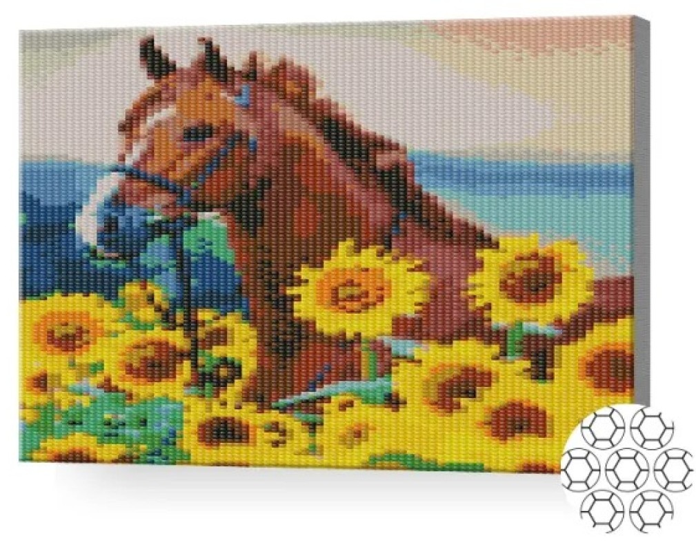 Pictura cu diamante după numere Art Gallery Premium Calul în câmp cu floarea soarelui 30x40cm (XQB75532)
