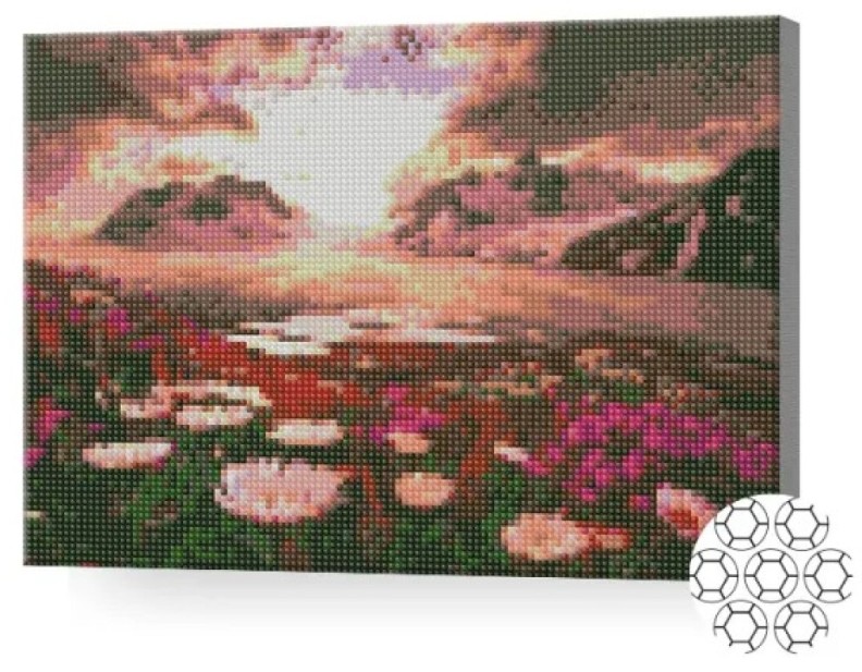 Pictura cu diamante după numere Art Gallery Premium Розовые цветы в горах 30x40cm (XQB76388)