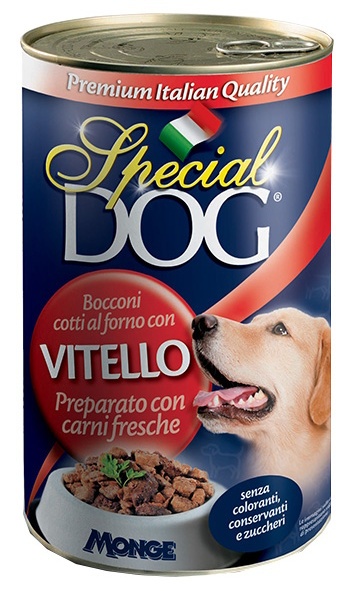 Hrană umedă pentru câini Monge Superpremium Special Dog Can Chunks with Veal 1275g