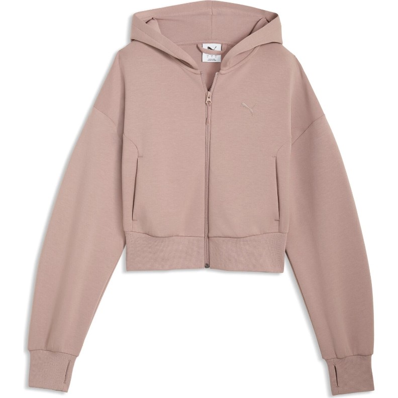 Manșetele și tivul elastice cu nervuri fixează delicat forma, fără a încărca silueta. Orificiile pentru degetul mare de la manșete adaugă un accent practic și ajută la menținerea căldurii în zilele mai răcoroase. Buzunarele laterale completează organic funcționalitatea, iar logo-ul minimalist PUMA Cat de pe piept evidențiază apartenența la linia tehnologică a brandului.