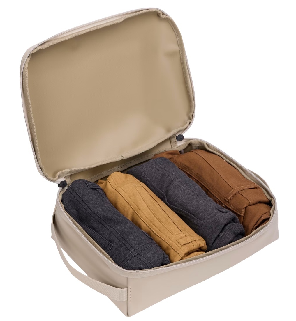 Organizează‑ți bagajul cu adevărat: Thule Chasm Medium- este un cub de organizare compact și rezistent, cu volum de 11 L și greutate ușoară. Fabricat din material 100% reciclat, durabil și rezistent la apă, perfect pentru haine, echipament de călătorie, încălțăminte sau accesorii. Fermoarele și țesătura protejează conținutul de praf și umezeală. Mânerul practic permite transport ușor-folosește‑l singur sau împreună cu alte organizeatoare, acasă sau în călătorii.