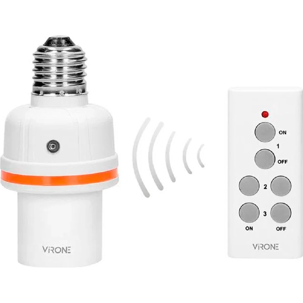 Virone RS6 E27 este un soclu pentru bec cu telecomandă, care permite pornirea și oprirea becurilor obișnuite cu soclu E27 folosind telecomanda. Dispozitivul funcționează pe frecvența radio 433 MHz și suportă becuri cu o putere de până la 60 W pentru becurile tradiționale și până la 22 W pentru LED-uri.