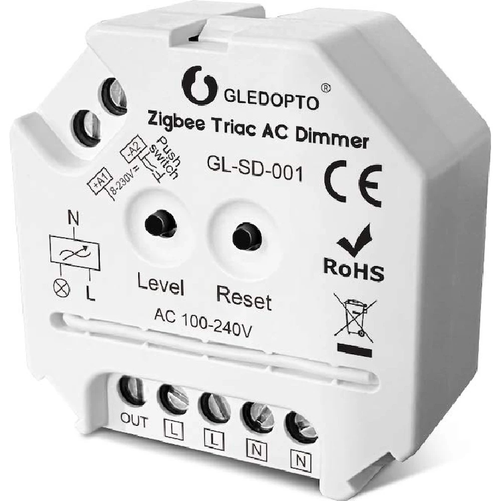 Gledopto GL‑SD‑001 este un dimmer inteligent Zigbee 3.0 Triac AC, proiectat pentru controlul luminii în rețele electrice de AC 100‑240 V printr‑un gateway Zigbee compatibil (de exemplu în platforme Tuya Smart, SmartThings, Philips Hue sau Google Home).
