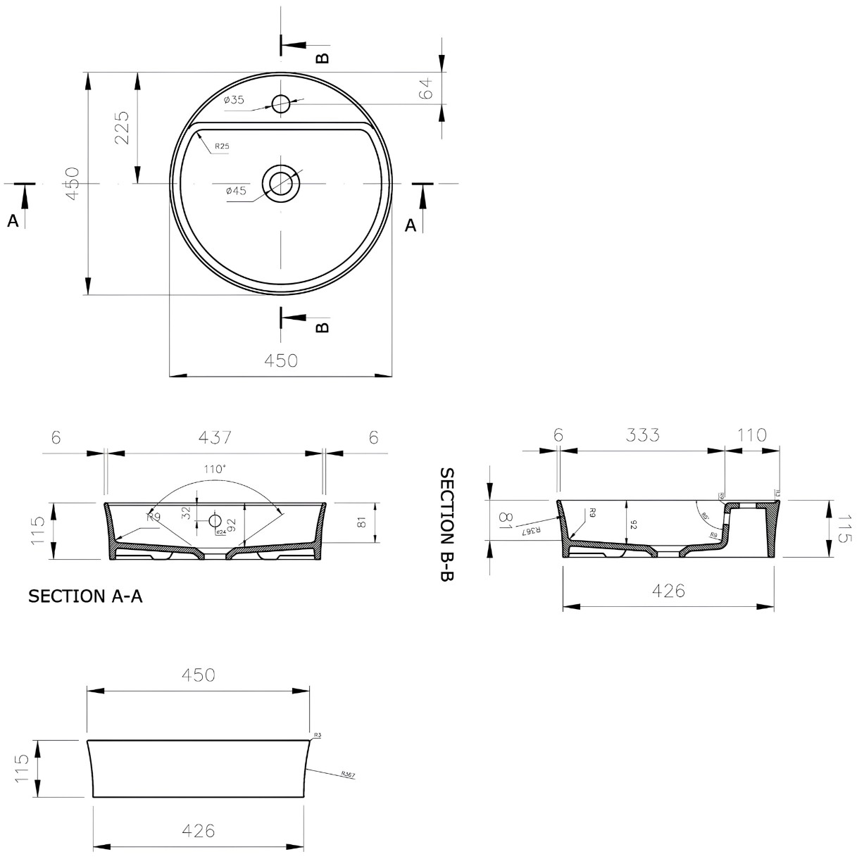Dimensiuni450х115 mm