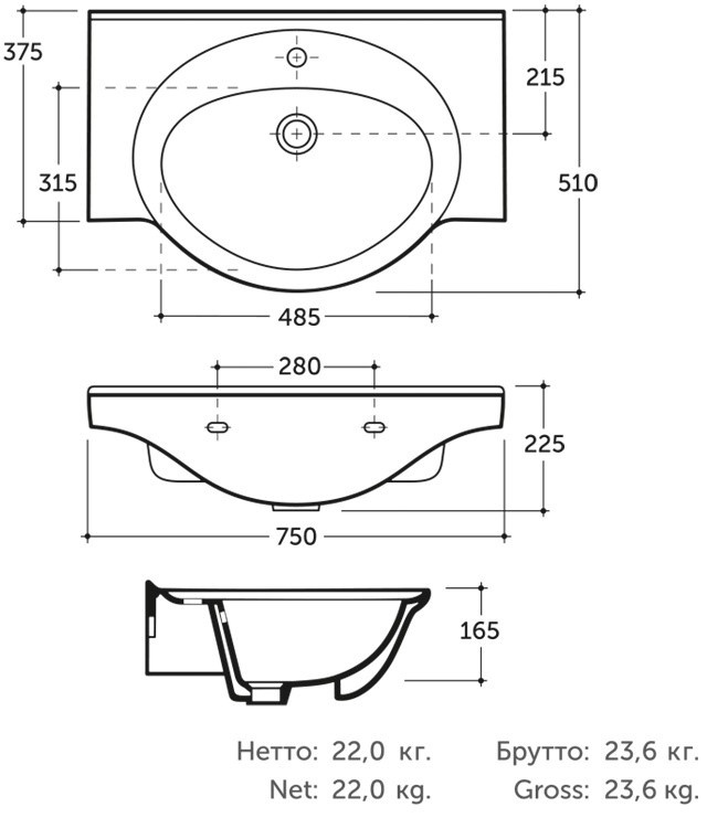 Dimensiuni750х510х225 mm
