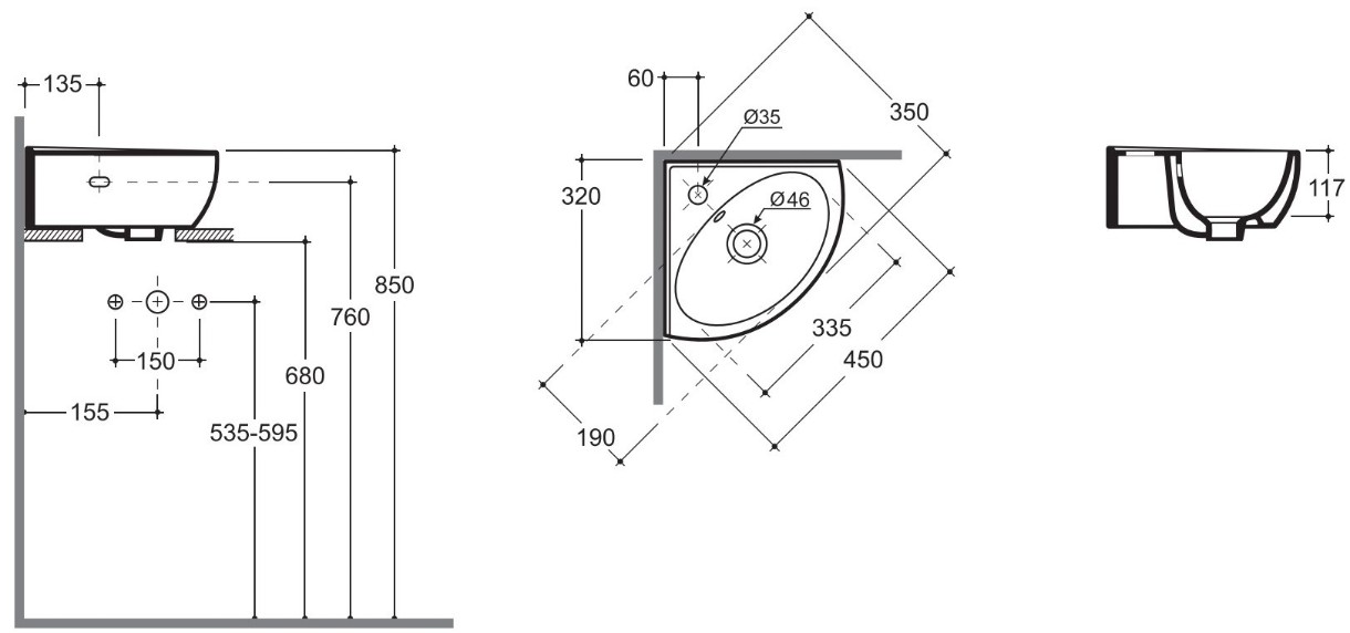 Lavoar Keramin Lago 45 Angular White imaginea #2 — magazin online Desire.md
