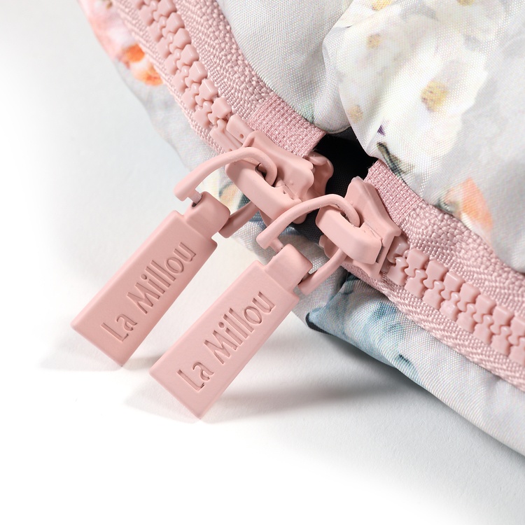 Fermoarele puternice și de înaltă calitate au puloverele de cauciuc confortabile personalizate cu sigla La Millou. Încuietori pe părțile laterale, care se extind de sus și de jos, permit ventilarea picioarelor sau scoaterea completă a capacului – se creează un insert de cărucior cald și moale.