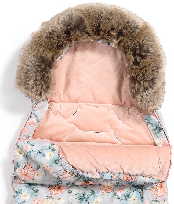 Căciula este o glugă caldă finisată cu o blană artificială elegantă, care poate fi detașată opțional Hota are benzi elastice cusute care vă permit să-i ajustați dimensiunea Umplere antialergică pufoasă în stratul superior 400 g Partea de jos a sacului căruciorului este căptușită cu un ortalion mat, impermeabil la interior, pentru a preveni murdărirea pantofilor.
