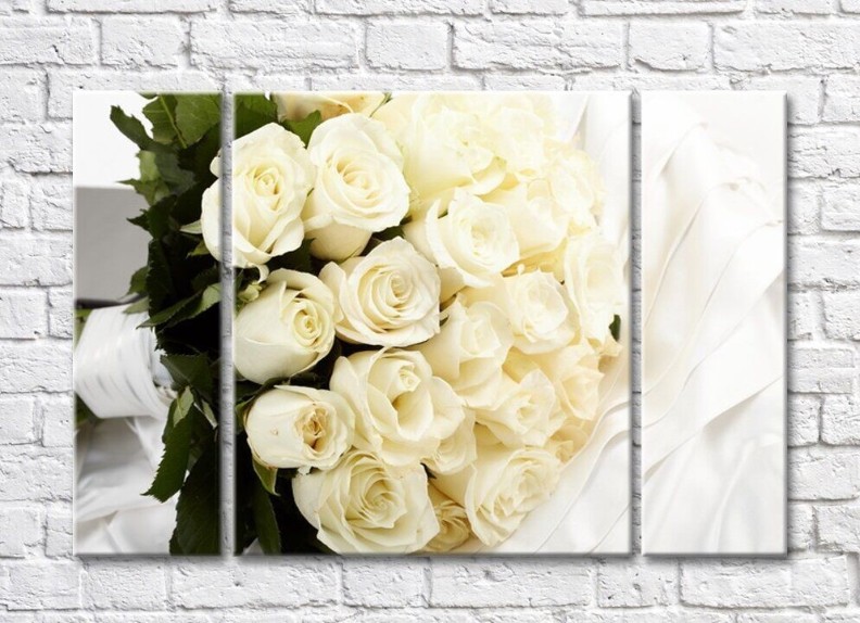 Pictură Rainbow Elegant bouquet of White roses on White silk (500837)