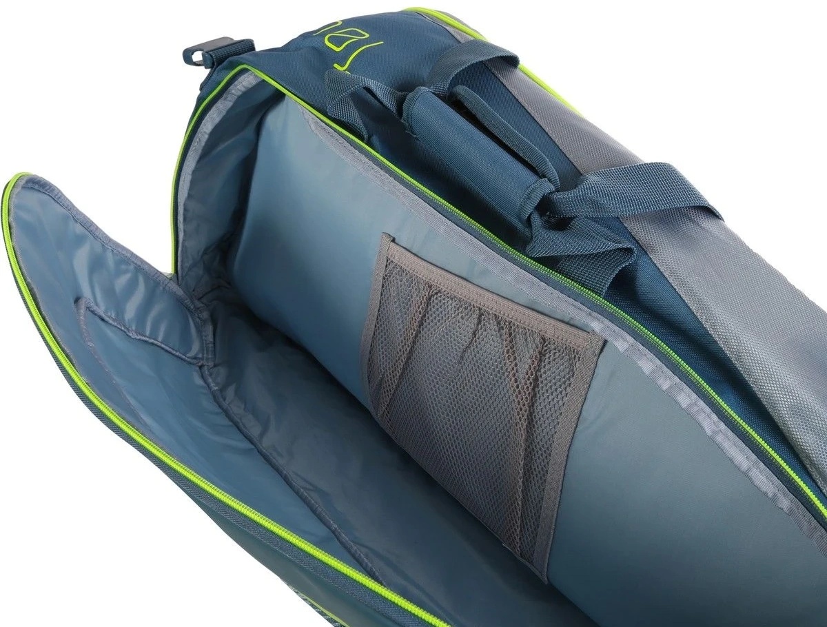 Compartimentele principale permit depozitarea a până la șase rachete, unul dintre ele fiind dotat cu tehnologia CCT+, care protejează rachetele de temperaturi extreme. Buzunarele suplimentare sunt ideale pentru haine, încălțăminte, accesorii și mingi de tenis — geanta poate găzdui cu ușurință 1–2 cutii de mingi.