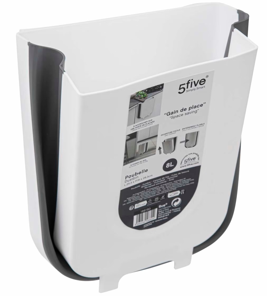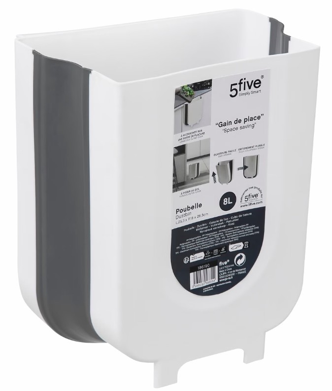 Coș de gunoi 5five, 8 L -coș compact și practic pentru deșeuri, perfect pentru bucătărie, baie sau birou. Fabricat din plastic durabil și ușor, rezistent la utilizarea zilnică. Forma sa economisește spațiu și se potrivește bine în zone înguste.