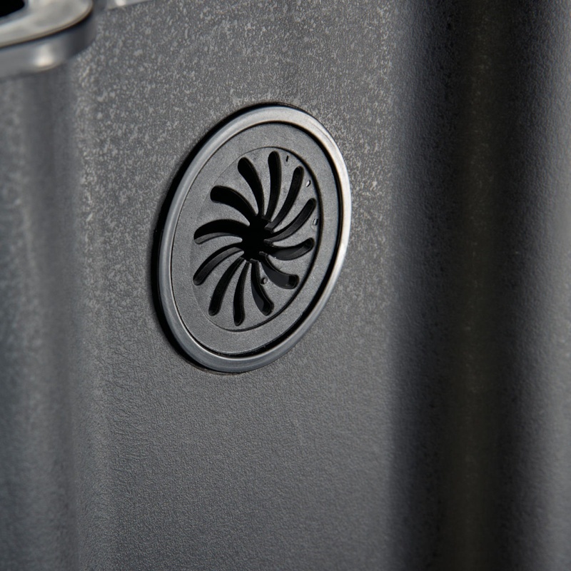 Capacul și pedala sunt fabricate din oțel inoxidabil, iar corpul este din oțel vopsit electrostatic, asigurând rezistență și durabilitate în timp. Sistemul cu amortizor integrat face ca închiderea capacului să fie aproape silențioasă. Coșul dispune de un fixator practic pentru sacul de gunoi, care împiedică alunecarea acestuia. Inserția interioară din plastic este ușor de scos pentru golire și curățare. Finisajul mat și nuanța grafit conferă un aspect modern și discret, potrivit pentru diferite stiluri de interior.