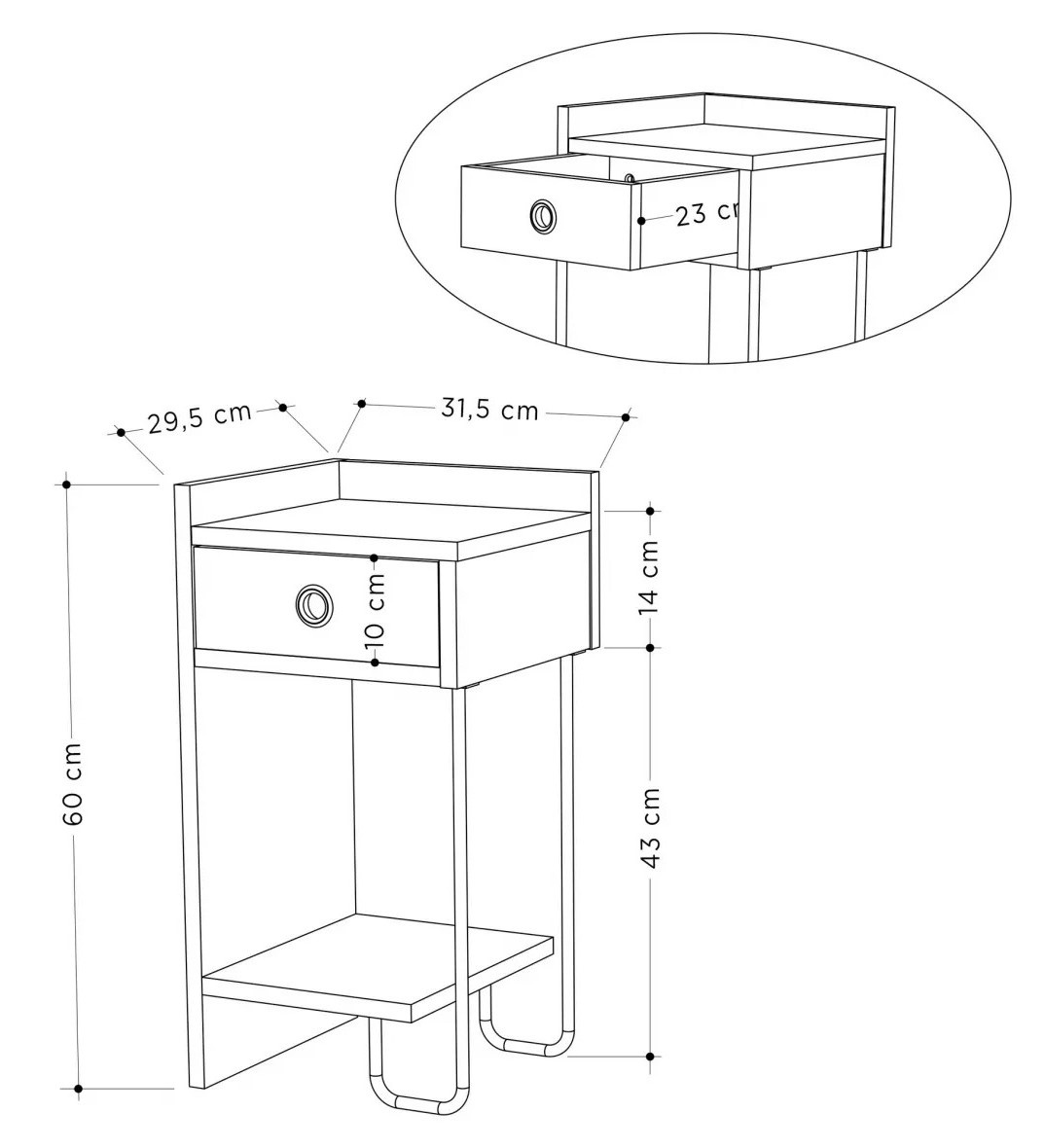 Datorită dimensiunilor compacte și designului elegant, noptiera se potrivește în orice decor de dormitor. Lățimea de 32 cm, înălțimea de 61 cm și adâncimea de 30 cm oferă spațiu suficient pentru obiectele esențiale, menținând ordinea. Suprafața netedă se curăță ușor.