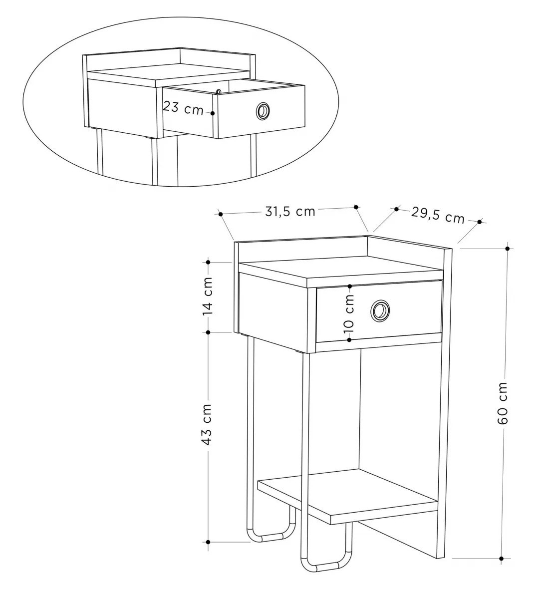 Datorită dimensiunilor compacte și designului elegant, noptiera se potrivește în orice decor de dormitor. Lățimea de 32 cm, înălțimea de 61 cm și adâncimea de 30 cm oferă spațiu suficient pentru obiectele esențiale, menținând ordinea. Suprafața netedă se curăță ușor.
