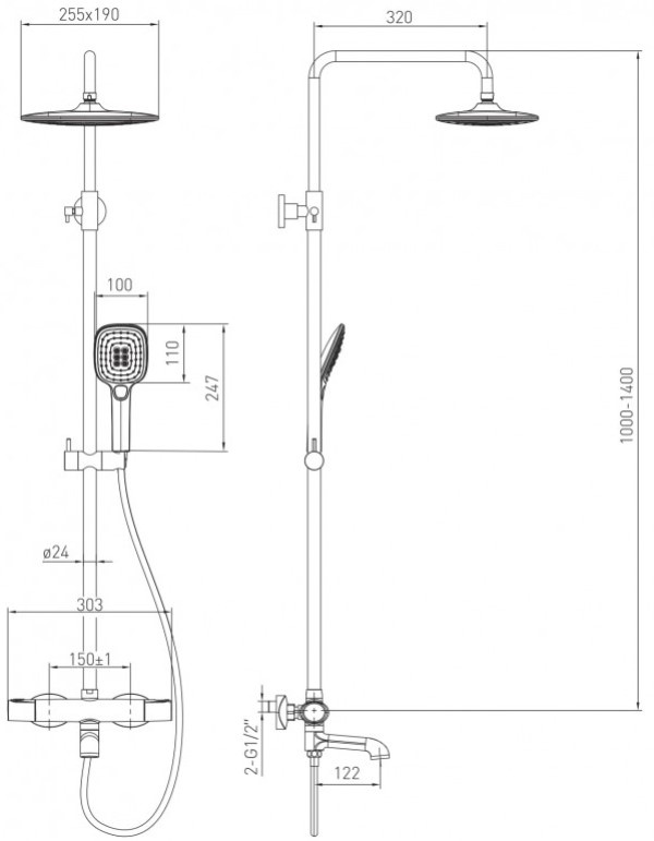Dimensiunile dus stationar255х190 mm