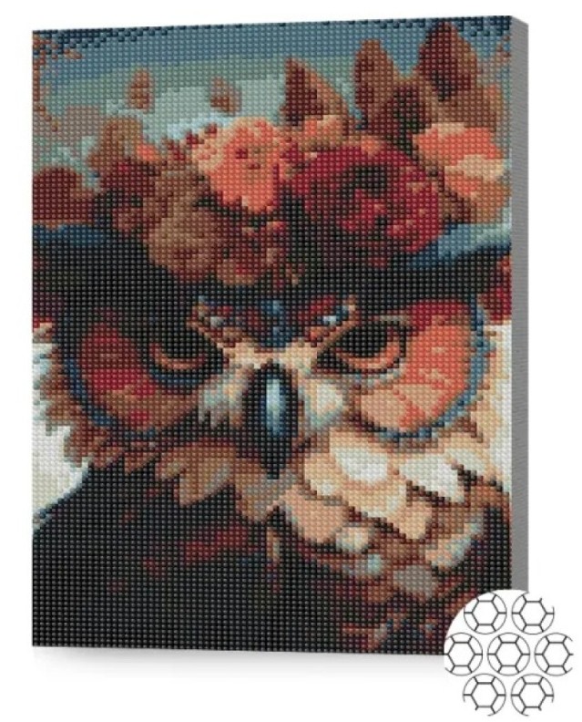 Pictura cu diamante după numere Art Gallery Premium Bufniță în coroniță de flori 30x40cm (XQB80199)