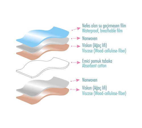 Primul strat: Absorbția și rezistența la apă sunt obținute prin laminarea foliei de polietilenă pe un material nețesut care conține viscoză.