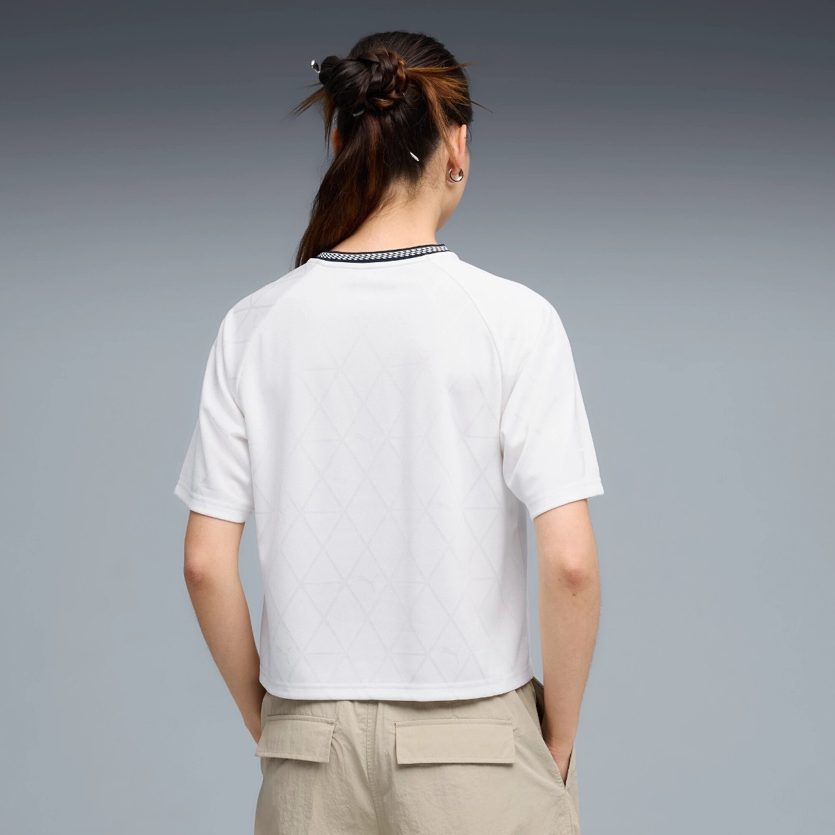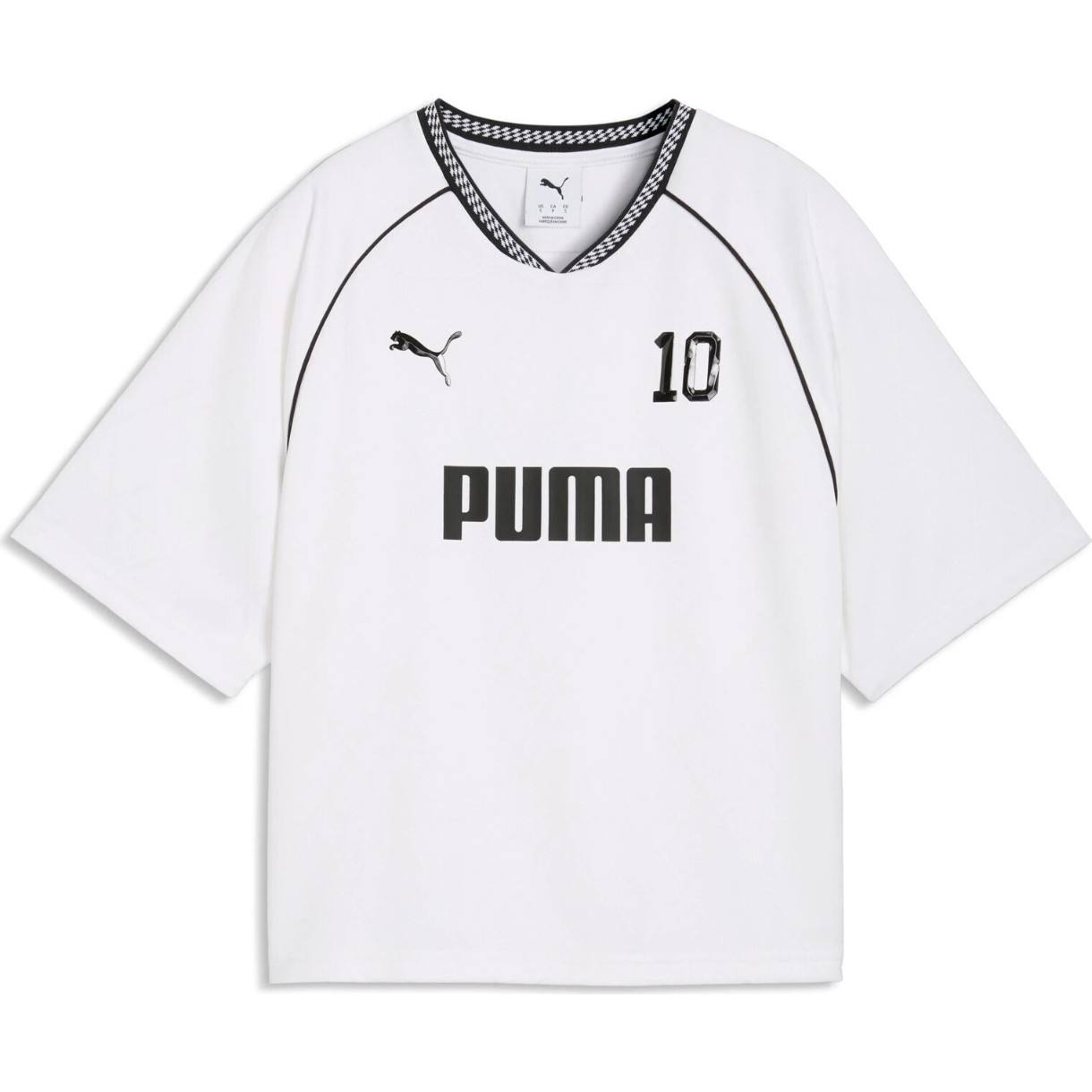 Logo-ul lucios Puma Cat și numărul 10 aplicate pe piept, împreună cu inscripția PUMA imprimată, creează un accent expresiv în spiritul clasic al stilului sportiv. Tricoul este realizat în mare parte din materiale reciclate, combinând funcționalitatea cu o abordare responsabilă față de resurse.