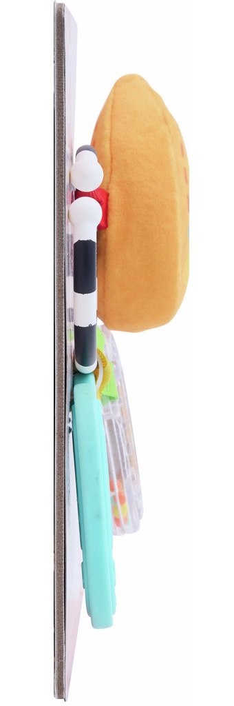Jucăria de dezvoltare ABC „Pentru bebeluși” de la marca HAPE este un set multifuncțional care vizează dezvoltarea senzorială completă a bebelușilor. Este alcătuit din trei componente: un accesoriu de dentiție, o zornăitoare clasică și o jucărie de pluș, conectate printr-un inel alb-negru, care facilitează atașarea la cărucior sau scaun auto.