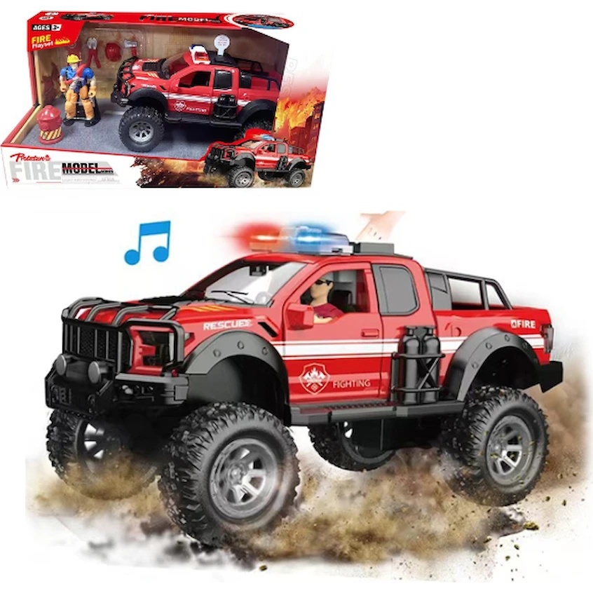 Mașină de teren a pompierului cu figurină – o jucărie perfectă pentru micii eroi! Setul include o mașină cu lumini intermitente, o figurină de pompier și accesorii.