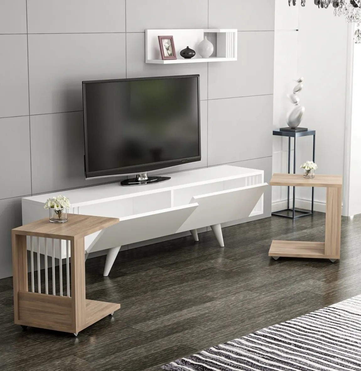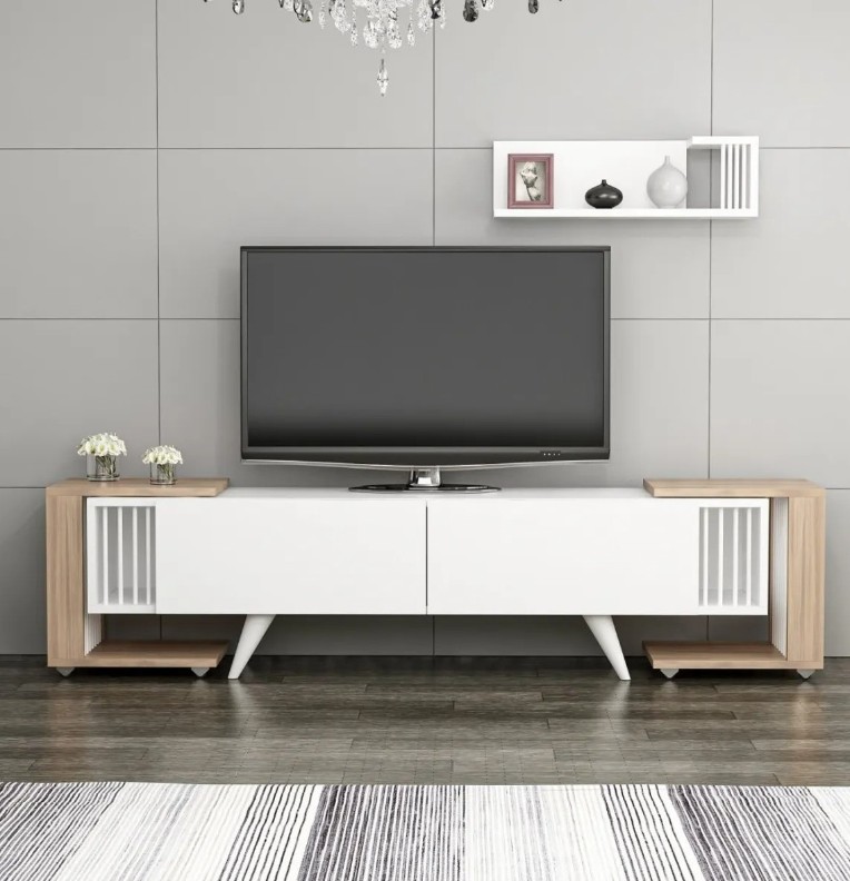 Realizată din panouri de particule de lemn acoperite cu melamină, unitatea TV oferă rezistență și durabilitate, suportând cu succes uzura zilnică.