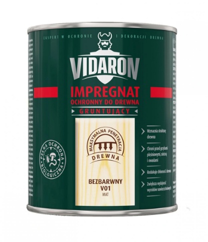 Impregnant modern pentru protecția și decorarea lemnului situat atât la exterior cât și în interiorul încăperilor. Produsul este destinat impregnării lemnului folosit în interiorul și exteriorul încăperilor. Protejează lemnul împotriva condiţiilor atmosferice severe, formând pe suprafața lemnului o peliculă rezistentă la biocoroziune (pete albastre, ciuperci de mucegai). Aplicat împreună cu Impregnantul Protectiv VIDARON (incolor),asigură o protecție completă lemnului.