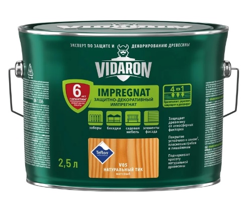 Impregnant modern pentru protecția și decorarea lemnului situat atât la exterior cât și în interiorul încăperilor. Produsul este destinat impregnării lemnului folosit în interiorul și exteriorul încăperilor. Protejează lemnul împotriva condiţiilor atmosferice severe, formând pe suprafața lemnului o peliculă rezistentă la biocoroziune (pete albastre, ciuperci de mucegai). Aplicat împreună cu Impregnantul Protectiv VIDARON (incolor),asigură o protecție completă lemnului.