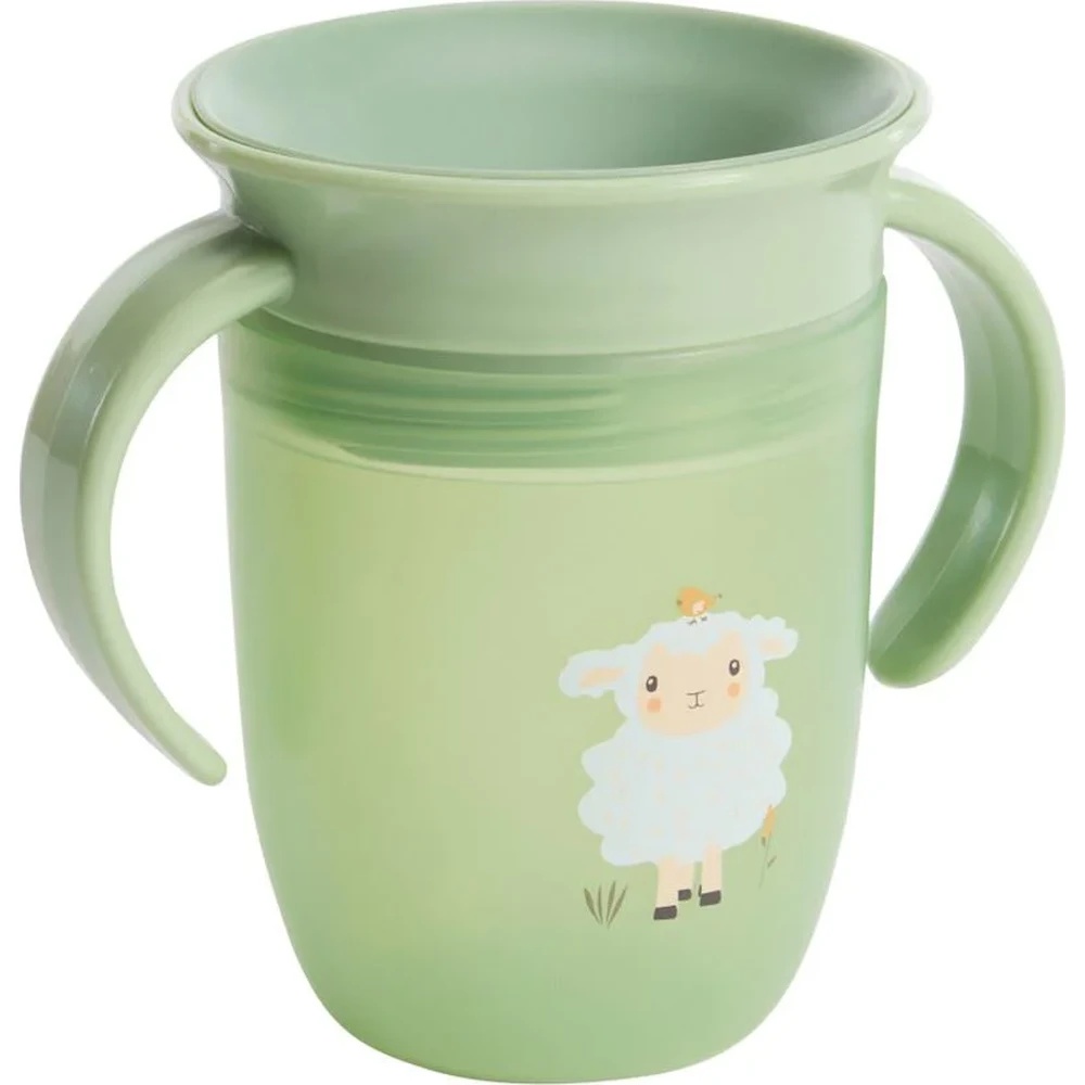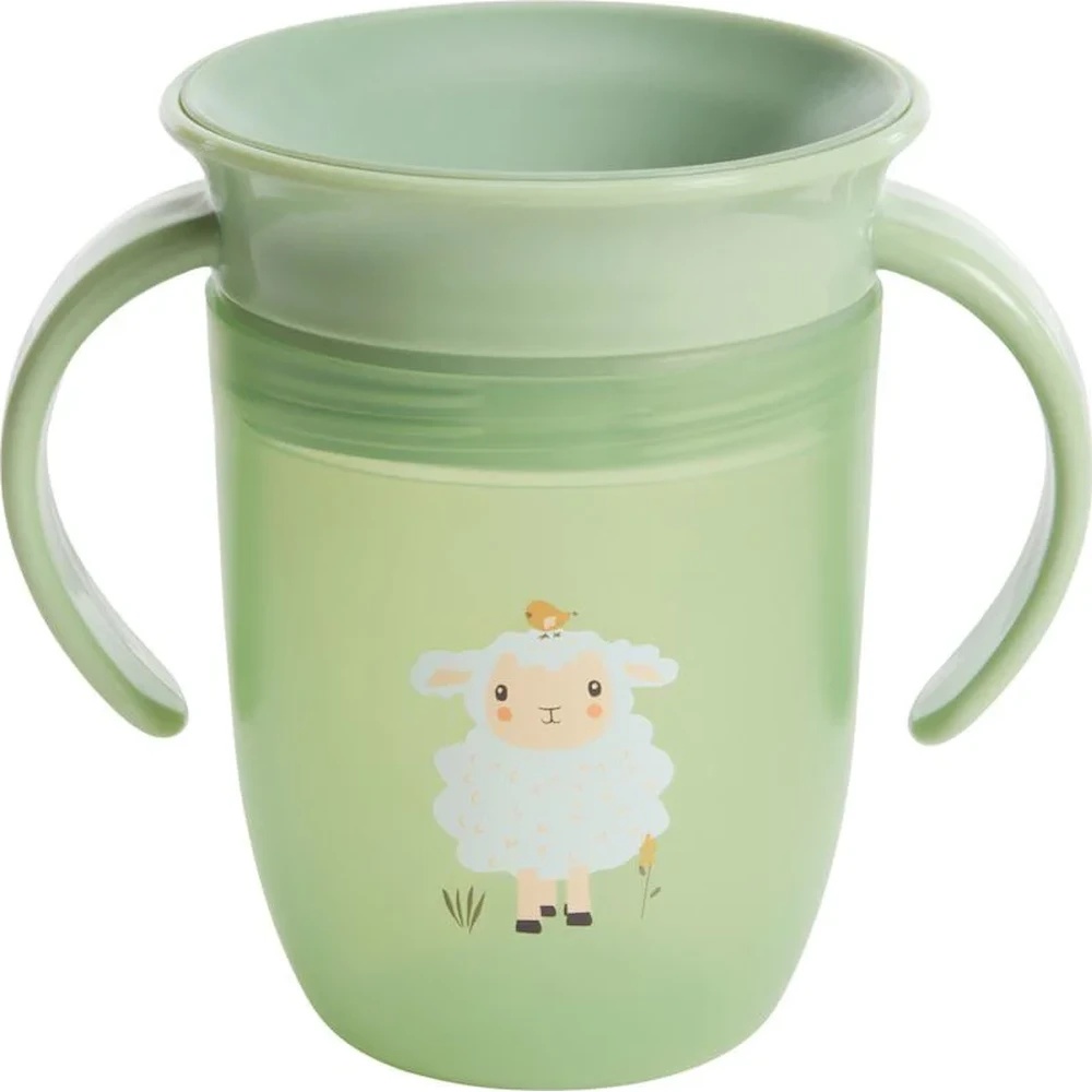 Această cană de învățare 360° cu motiv de fermă este special concepută pentru a ajuta copilul să treacă de la biberon la cană într-un mod ușor și progresiv.