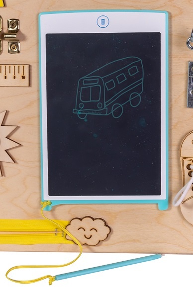 Tabla de dezvoltare este un loc de joacă tradițional pentru dezvoltarea timpurie a unui copil mic. Busy board a fost propus pentru prima dată de psihologul și educatorul italian Maria Montessori pentru dezvoltarea timpurie a copiilor. Busy board este unul dintre cele mai convenabile tipuri de jucării educaționale. Jocurile obișnuite cu Busy board dezvoltă abilități precum: coordonarea mișcărilor, abilități motorii fine, logică, memorie. Centrul de dezvoltare sub formă de tablă ocupată îl va ajuta pe copilul dvs. să facă primii pași în învățarea literelor, numerelor, culorilor și stăpânirii obiectelor de uz casnic.