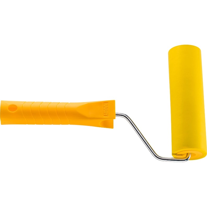 Ruloul de cauciuc HARDY, cu mâner — un instrument practic pentru lucrări de finisare și reparații. Este destinat pentru netezirea precisă a tapetului, a foliei autoadezive și a altor materiale subțiri pe diverse suprafețe. Datorită cauciucului dens, partea de lucru a rolei asigură o presare uniformă a materialului, elimină bulele de aer și contribuie la distribuirea uniformă a adezivului.