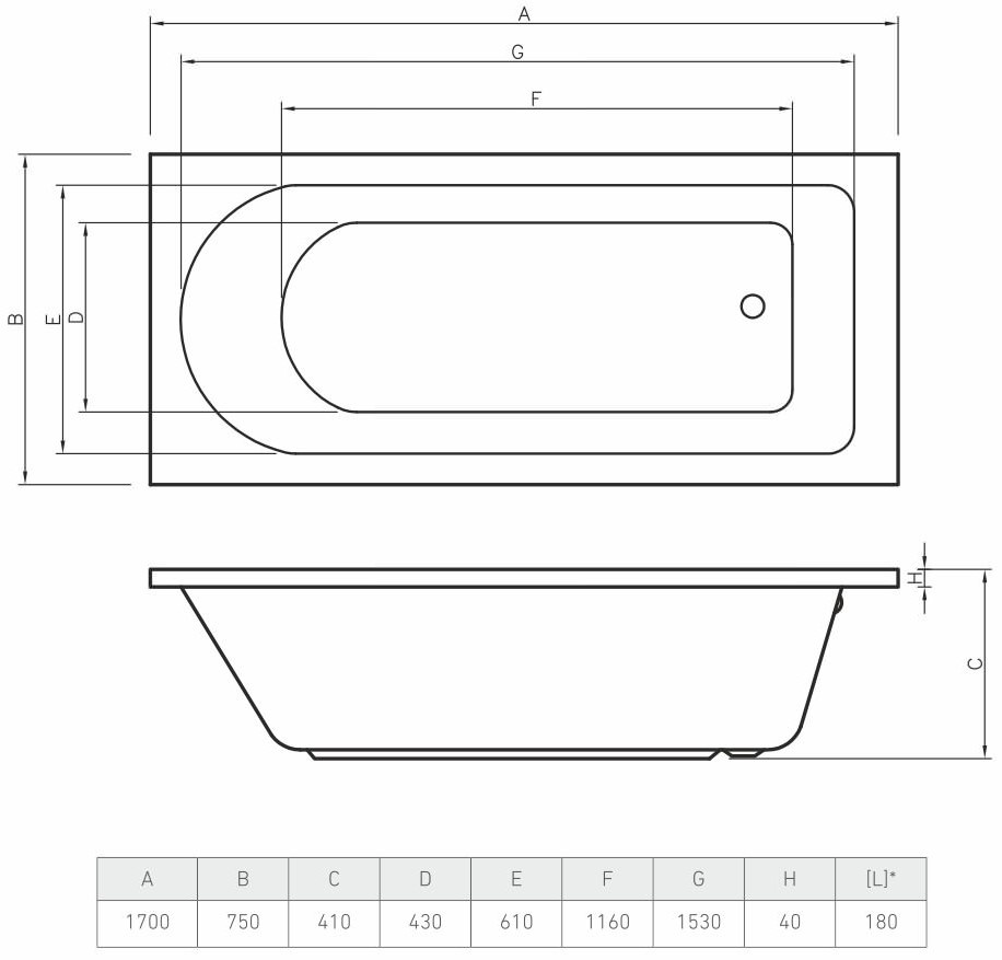 Cadă de baie Bonito Home Elara 170x75 (114227)