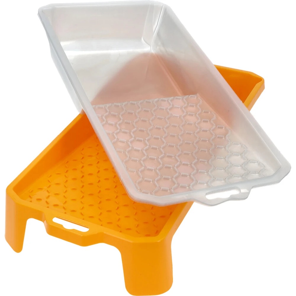 Forma unică a tăvii pentru vopsea este concepută pentru a asigura o colectare maximă și o distribuție uniformă a materialului de vopsire pe suprafața rolei. Se curăță ușor de vopseaua veche. Setul include, de asemenea, cinci inserții de rezervă pentru tavă.