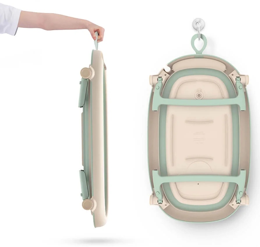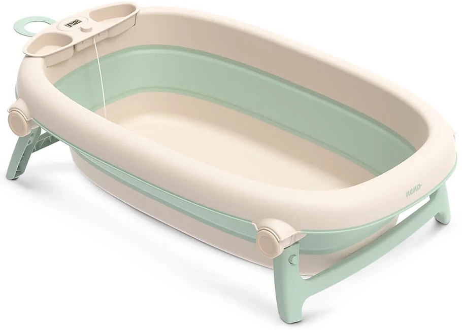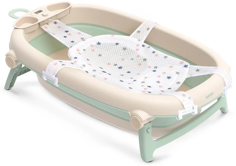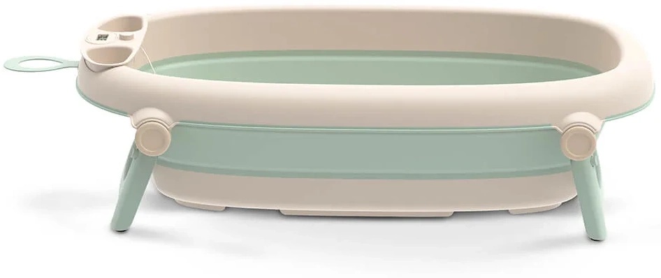 Datorită designului pliabil, ocupă foarte puțin spațiu și este ușor de depozitat sau transportat. Termometrul integrat ajută părinții să verifice rapid temperatura apei pentru o baie sigură. Suportul special pentru nou-născuți oferă stabilitate și poziționare corectă în timpul băiței. Materialele folosite sunt rezistente, fără BPA și sigure pentru pielea sensibilă a copilului. Baza antiderapantă asigură stabilitate și reduce riscul de alunecare. Designul în culoarea „mint” (verde mentă) este calm și plăcut vizual, potrivit pentru orice baie.