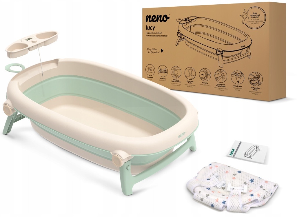 Cada pliabilă cu termometru Neno Lucy Mint 89 cm (NE.225119) este o soluție modernă și practică pentru baia bebelușului. Este concepută pentru a oferi siguranță și confort încă din primele zile de viață.