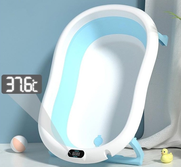 Cădița pliabilă U‑Grow Blue (5949494034106) cu pernuță‑hamac detașabilă și termometru digital încorporat este un model practic pentru baie, potrivită pentru bebeluși de la naștere până la aproximativ 36 de luni.