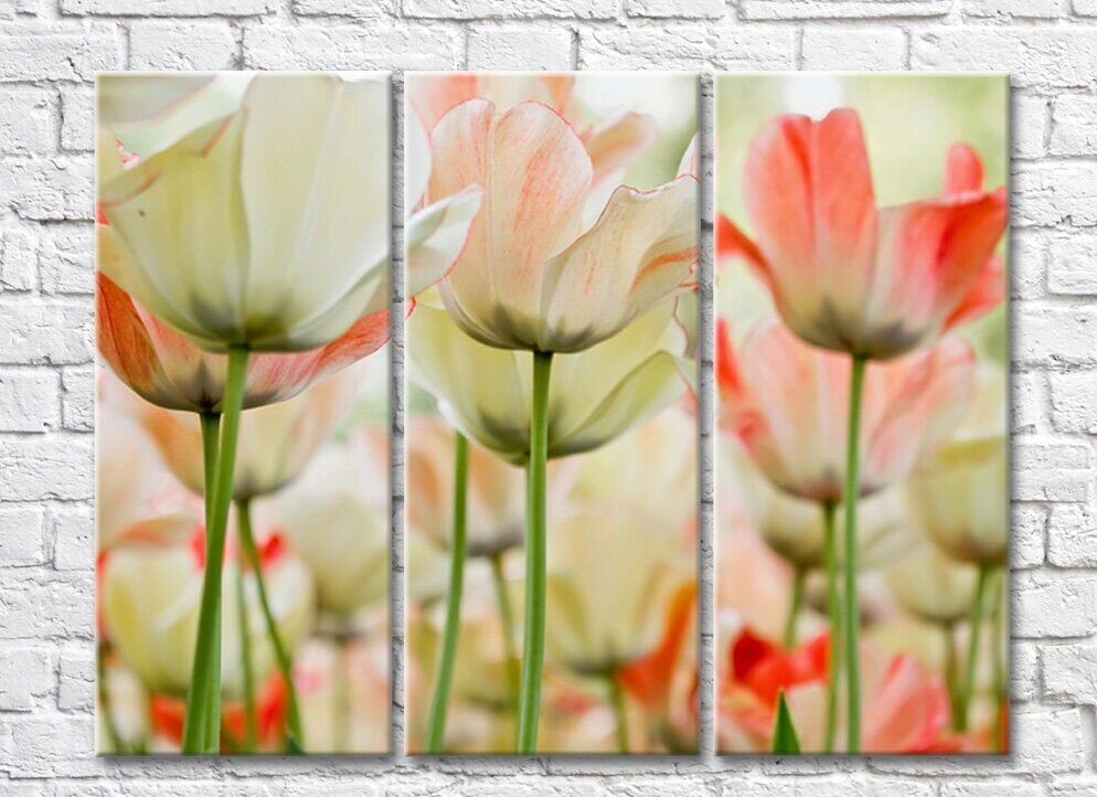 Pictură Rainbow Variegated white pink tulips (500516)